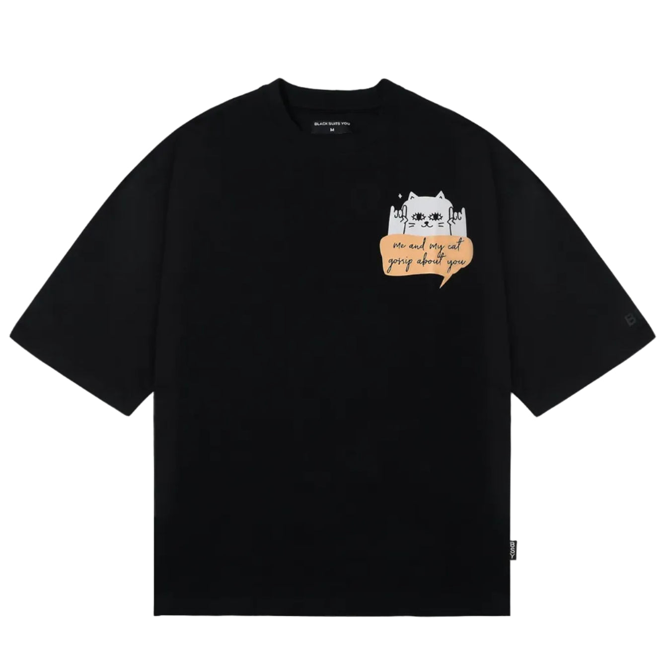 This playful cat t-shirt features a chest graphic that reads “me and my cat gossip about you.” Crafted in soft premium cotton, it’s expressive, witty, and perfect for everyday wear with personality.